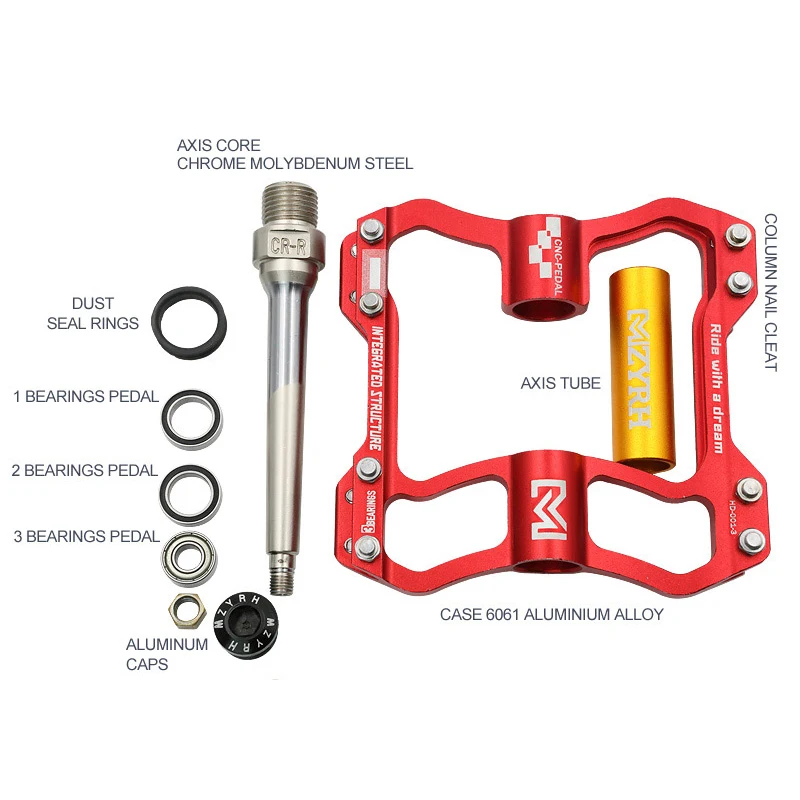 Mzyrh Ultralight Aluminum Alloy Bicycle Pedals Cycling Sealed Bearing Pedals With Anti-Slip Nail Bm